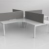 Axis Shared Singlesided Straightline Desk layout with 2 worktops. White Powdercoated 50mm x 50mm frame, 50mm x 25mm rail. 25mm Studio White worktop with ABS edge. Includes solid, segregated cable management trays, above desk power & data service mounting plates to each desktop. 900high offset hung screens (1200FFL) solid core with Breathe Fabric all over.