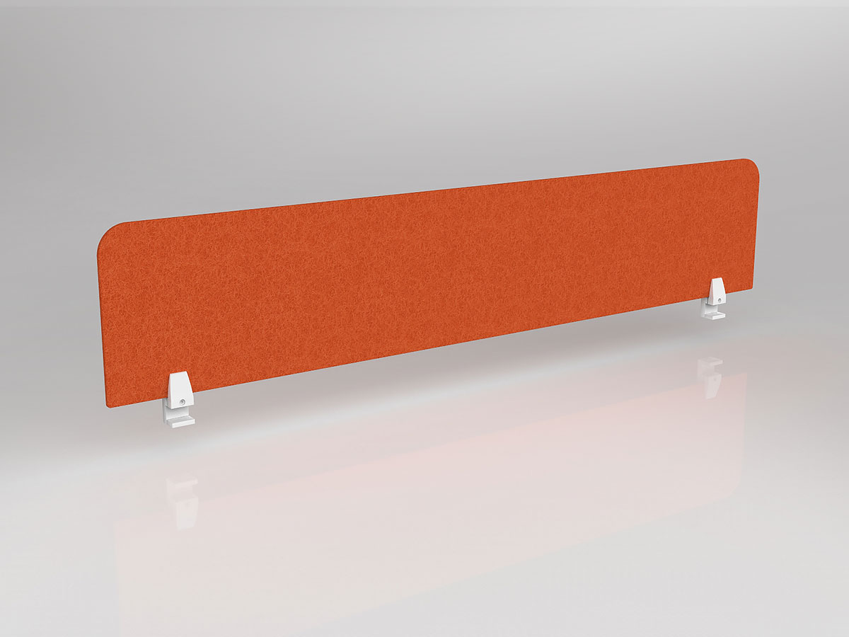 Clamp-on screen 1490mm wide by 290mm high (300mm above worktop). Includes white powdercoat clamps – select type on order. 9mm pinnable Sweety Orange e-panel screen with square finishing on bottom & 50mm radius top corners.